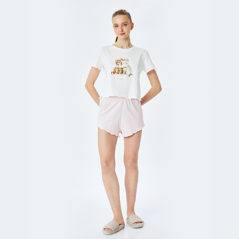 Cat printed cotton women’s shorts pajama set
