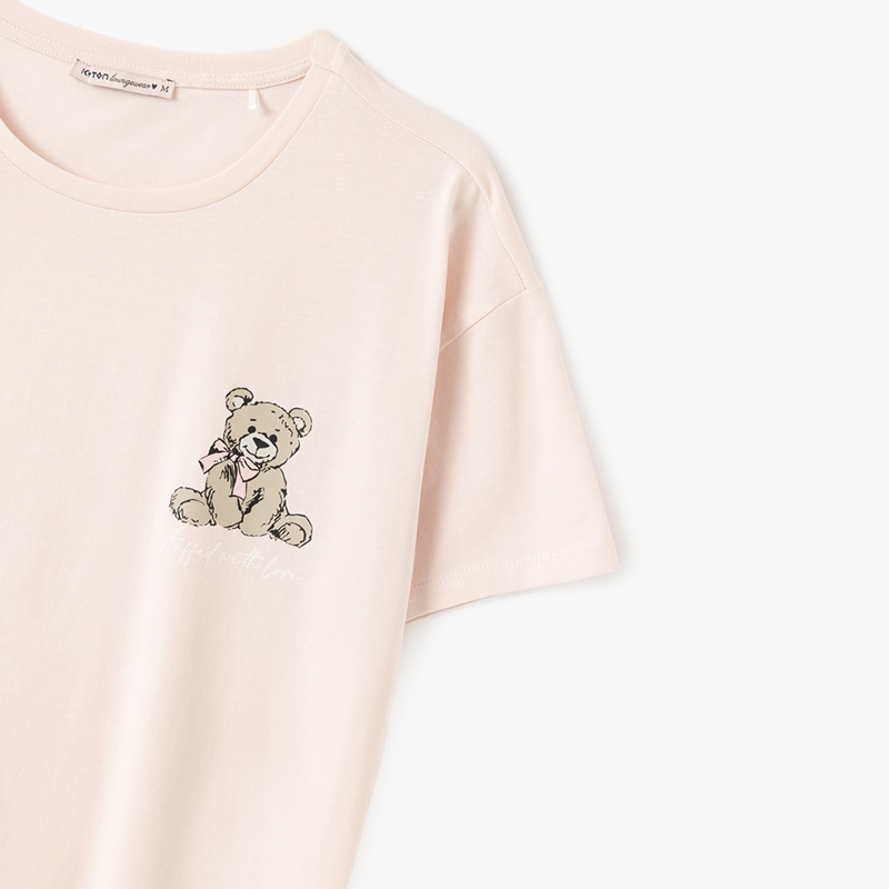 Bear printed cotton women’s shorts pajama set