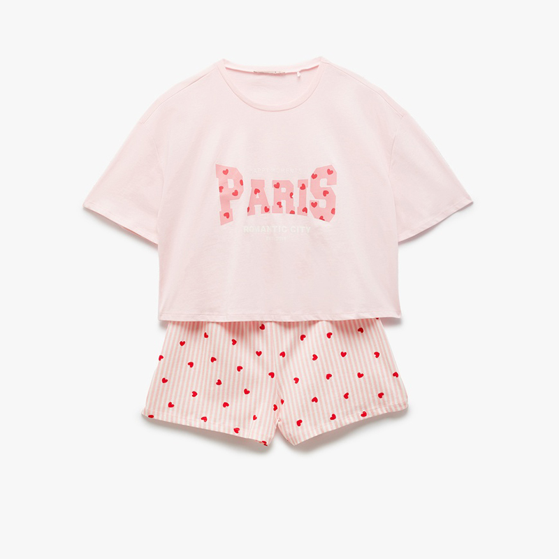 Cotton crew neck short sleeve heart printed shorts pajama set