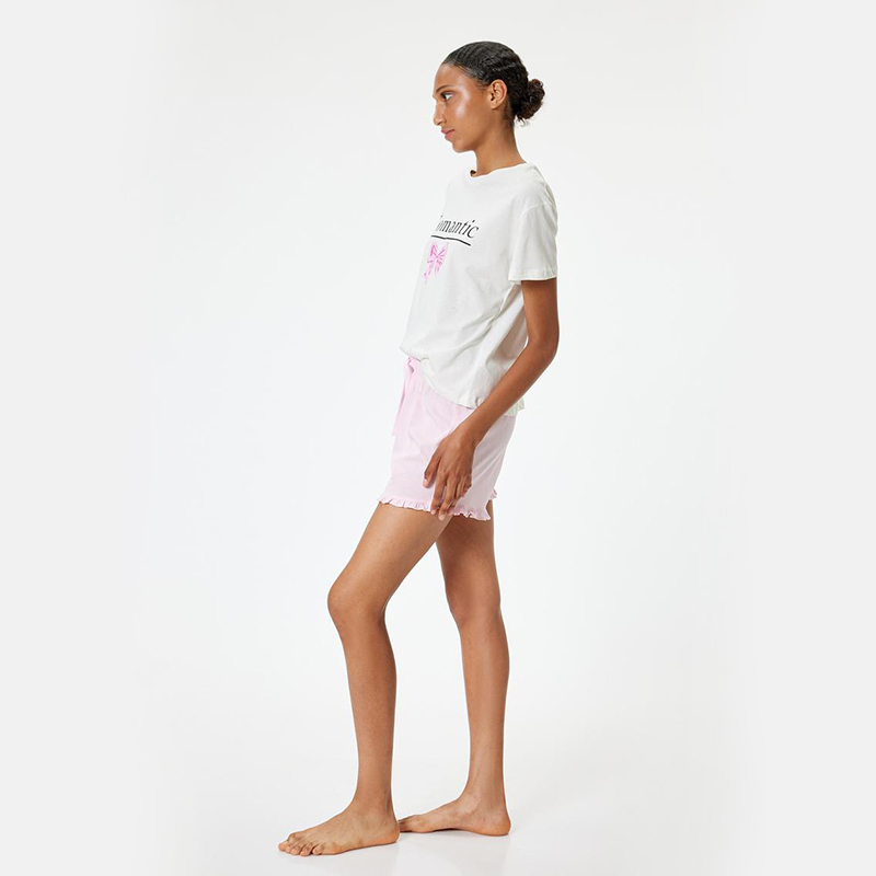 Cotton bowtie printed ruffle detail t-shirt and shorts 2 piece pajama set
