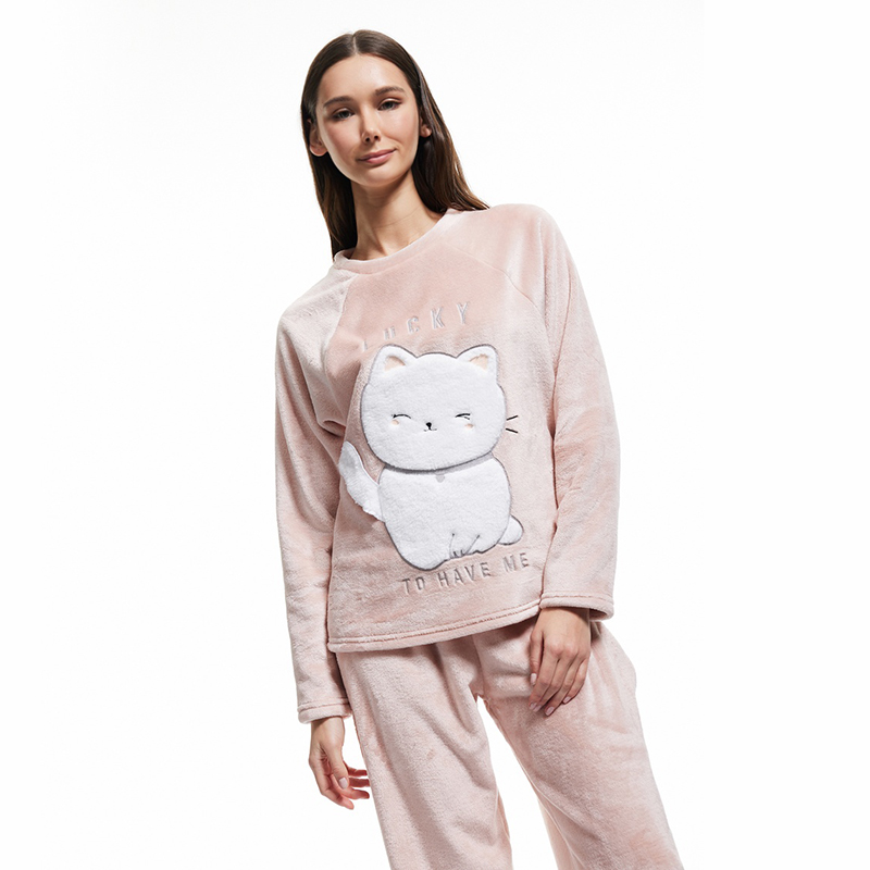 Autumn Polar Fleece Suit Thermal Printed Pajamas Set Women Sleepwear