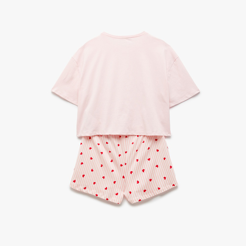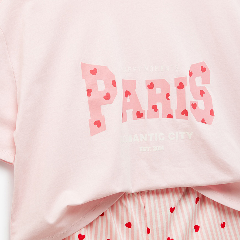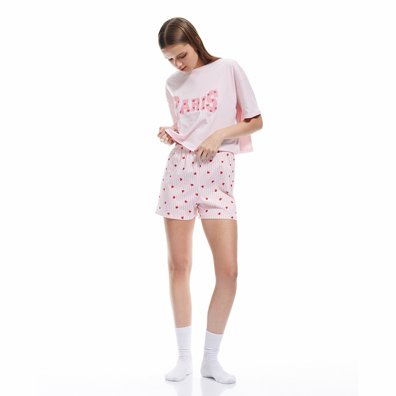 Cotton crew neck short sleeve heart printed shorts pajama set