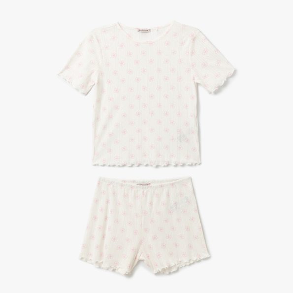 Floral patterned cotton short-sleeve crew neck pajama set with shorts
