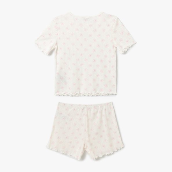 Floral patterned cotton short-sleeve crew neck pajama set with shorts