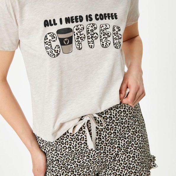 Leopard print cotton blend short sleeve voluminous knitted pajama set with shorts