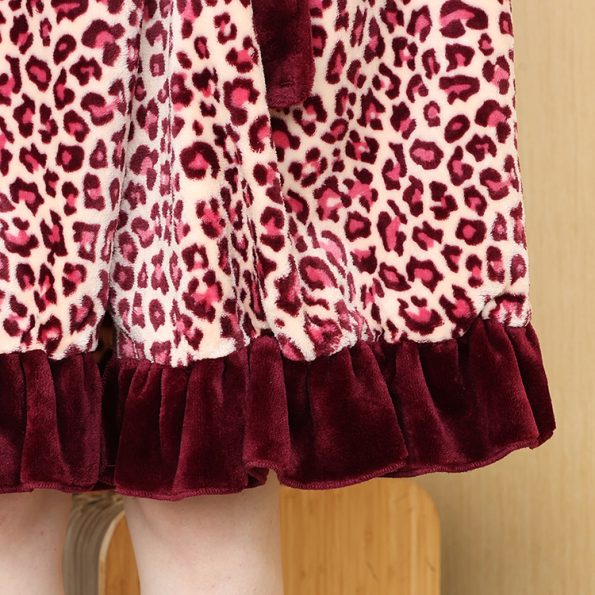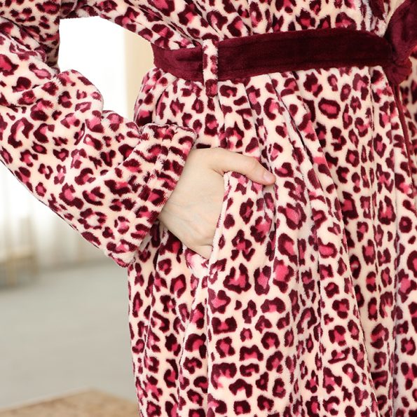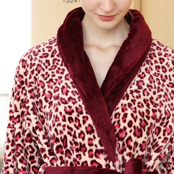 Leopard Printed Flannel Fabric Shawl Collar Bathrobe