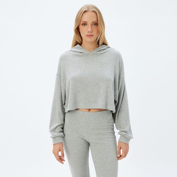 Long sleeved relax fit hooded crop pajama top