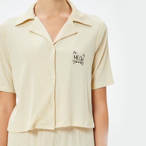 Women’s short top and trousers pajamas set Polyester sleepwear