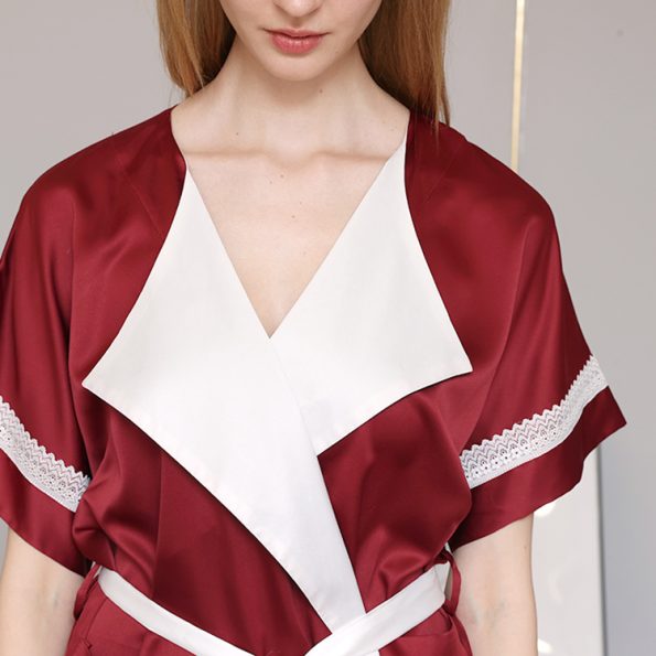 Be the first to review “Soft Knee Length Red Satin Fabric Women Bathrobe”