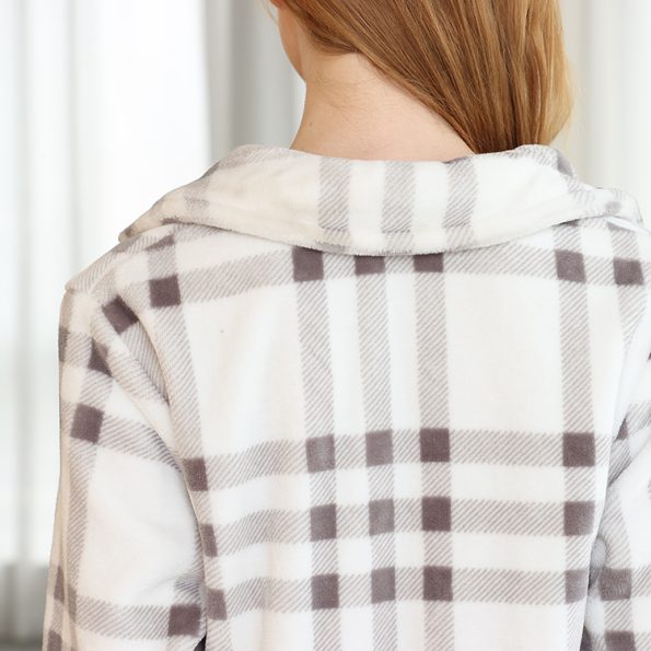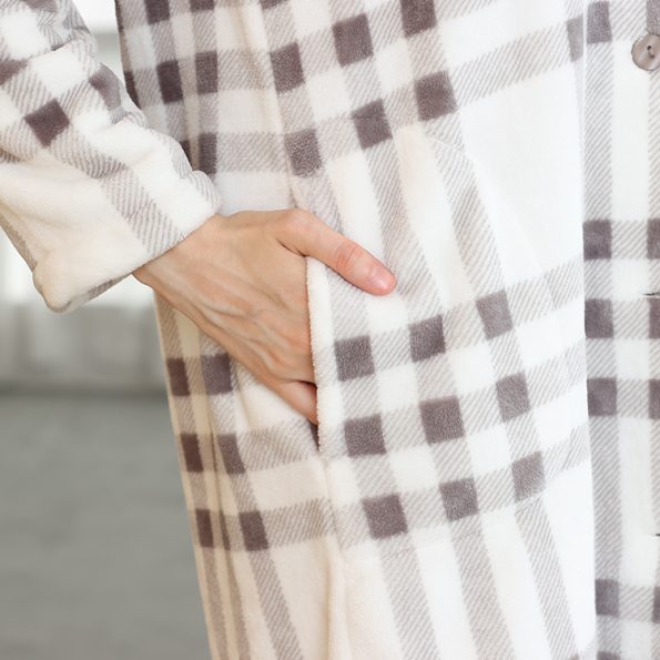Winter Fashion Robe Button Flannel Plaid Women Bathrobe