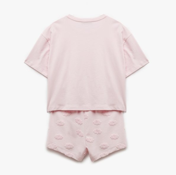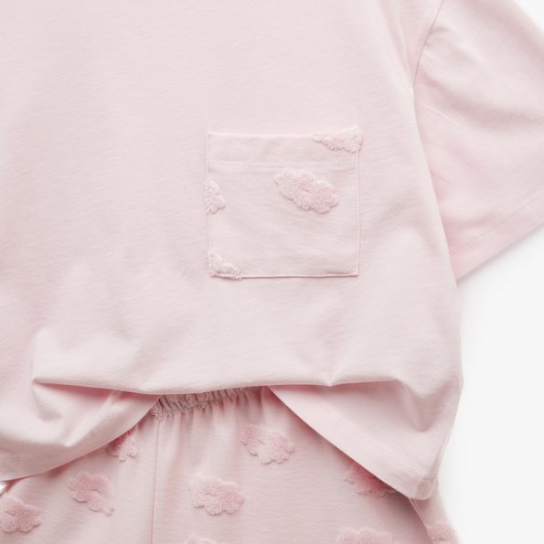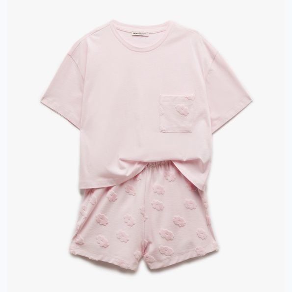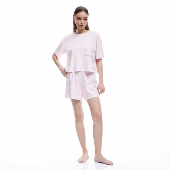 Women’s pink short-sleeved top and shorts pajamas set